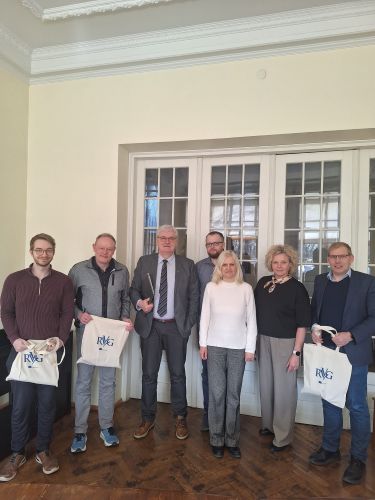1. foto no labās: Vēzeras ģimnāzijas direktors Guido Höltke, RVVĢ direktore Gundega Muceniece, izglītības metodiķe Ina Baumane, angļu valodas skolotājs Uģis Urtāns, vēstures skolotājs Māris Zvaigzne un Vēzeras ģimnāzijas vēstures skolotāji Volker Junghärtchen un Vincent Peltz.