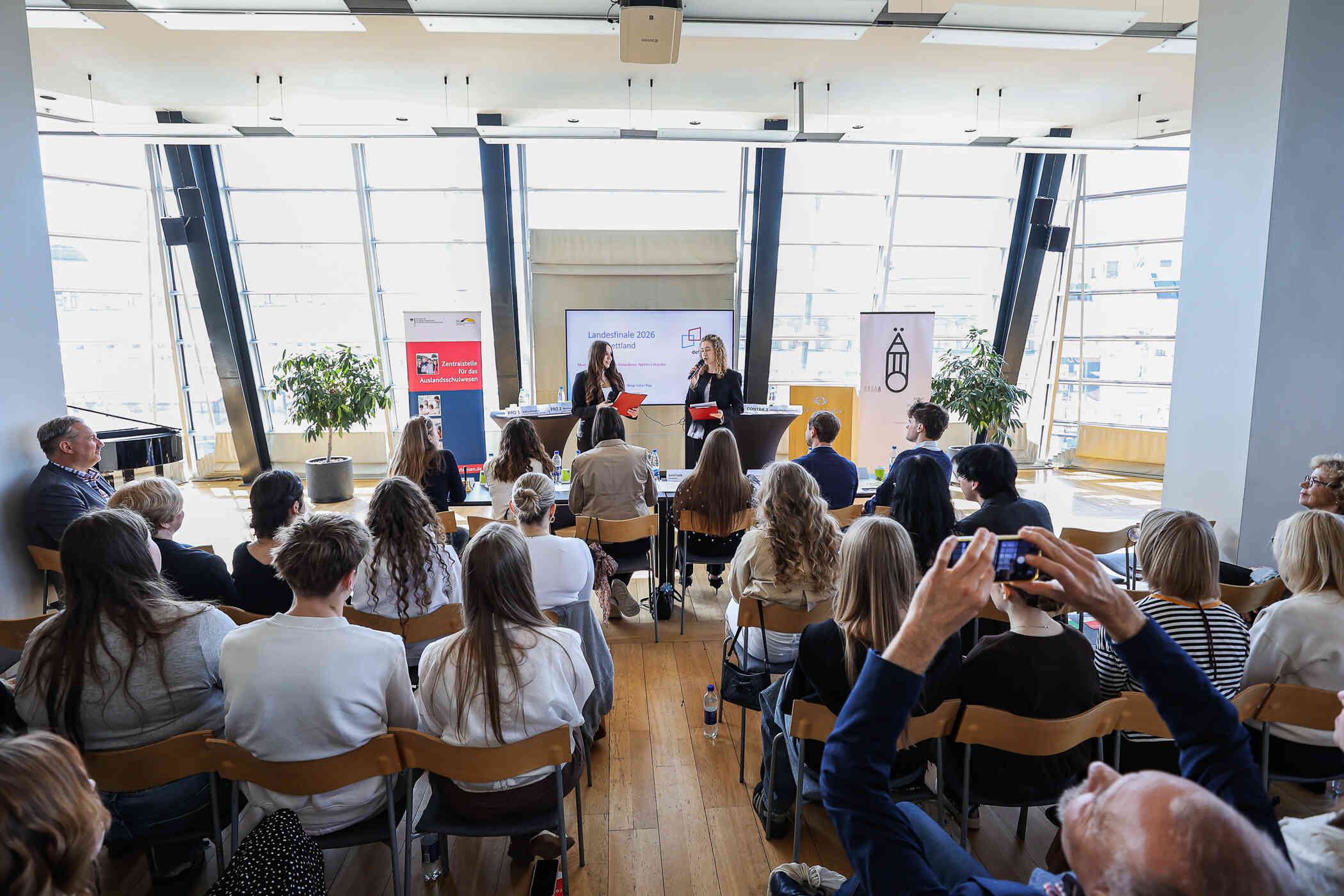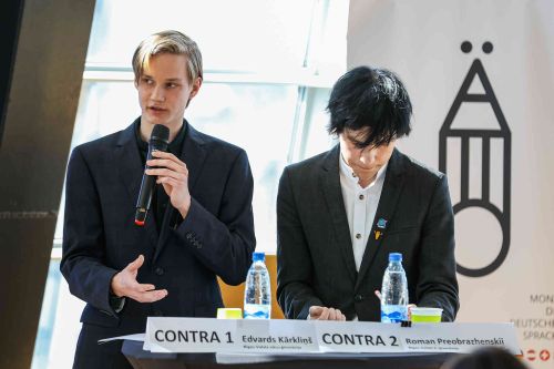 8. un 9. aprīlī Rīgas Valsts vācu ģimnāzijā norisinājās aizraujošas un izglītojošas debates 10. un 11. klašu skolēniem, kuras organizēja 12. EU klases pārstāvji sava sociālā projekta ietvaros. Šis pasākums pulcēja skolēnus, kuri vēlējās pārbaudīt savas argumentēšanas prasmes, kritisko domāšanu un spēju aizstāvēt savu viedokli dažādās aktuālās tēmās.